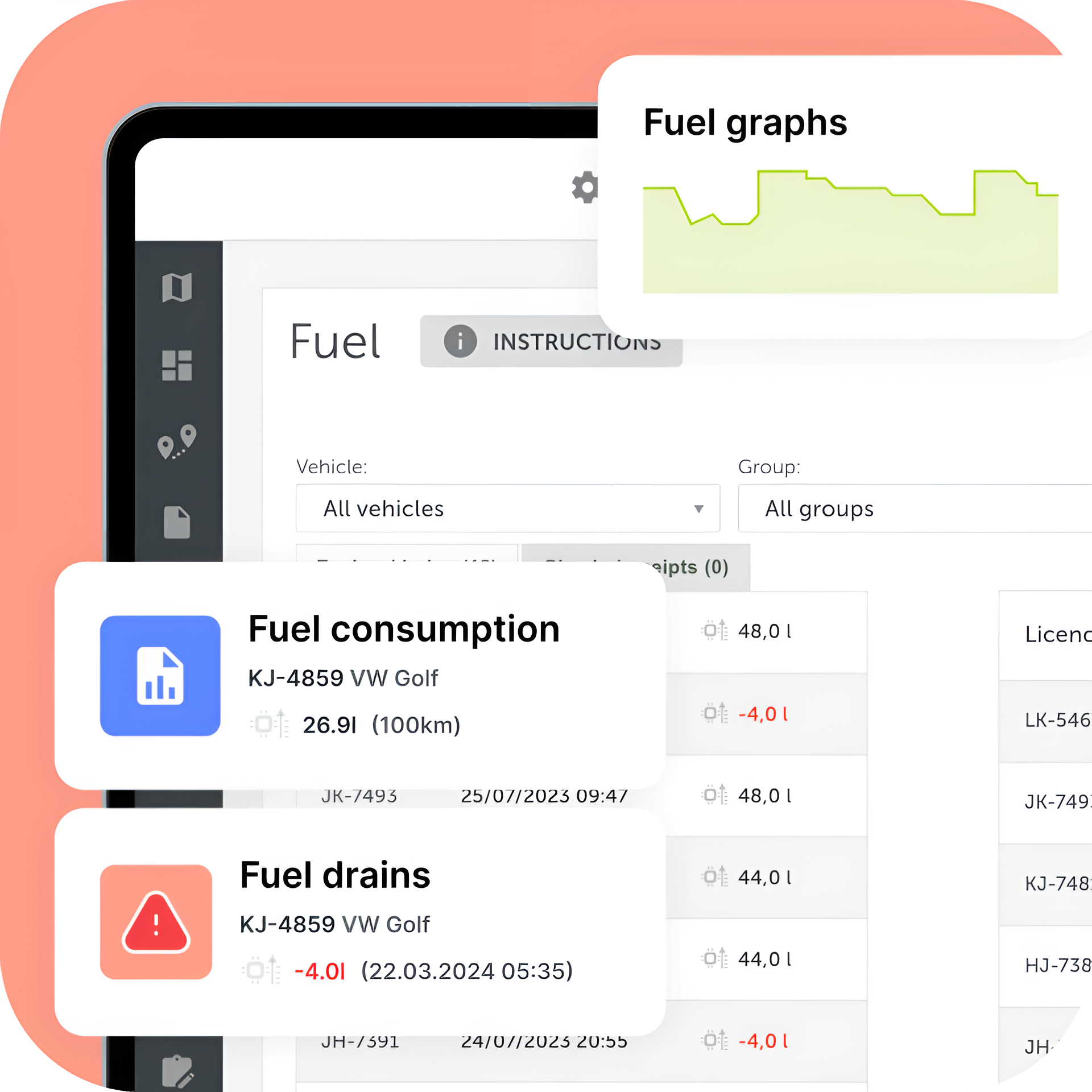 With MIoT fleet management you can easily input, overview and analyse all your fuel data in a single, easy-to-use platform.